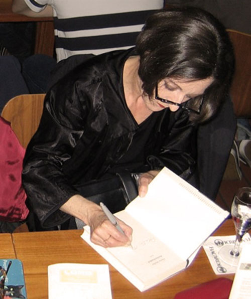 25.赫塔·米勒2009.12.11在斯德哥尔摩诺贝尔博物馆为读者图书签名。