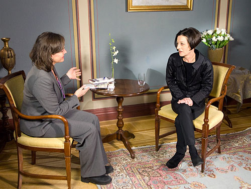 10.赫塔·米勒2009.12.6在斯德哥尔摩大饭店接受诺贝尔奖网站自由撰稿人玛丽卡·格里塞尔采访。