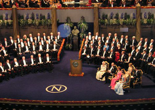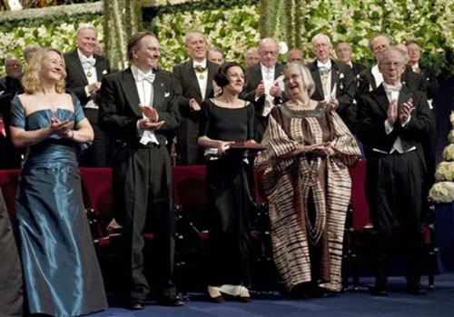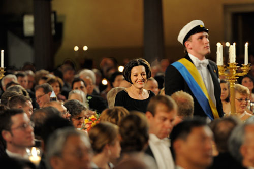 13.赫塔·米勒2009.12.10与其他诺贝尔奖得主们在斯德哥尔摩音乐大厅诺贝尔颁奖典礼上彩色照。
