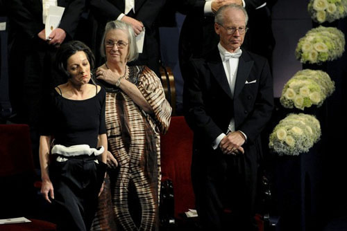 16.赫塔·米勒2009.12.10在斯德哥尔摩音乐大厅诺贝尔颁奖典礼与经济学奖得主埃莉诺·奥斯特罗姆、奥利弗·威廉姆森在诺贝尔奖颁奖典礼上。