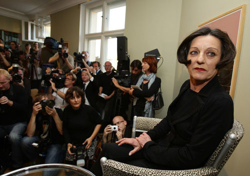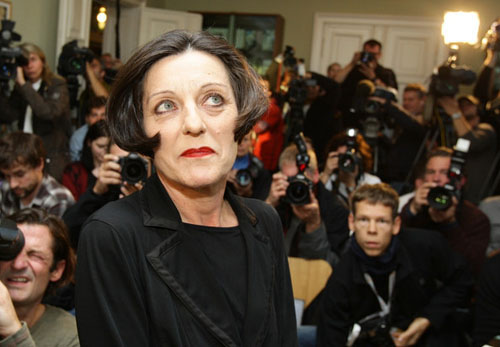 57.赫塔·米勒2009.10.8出席在柏林召开的新闻发布会彩照。