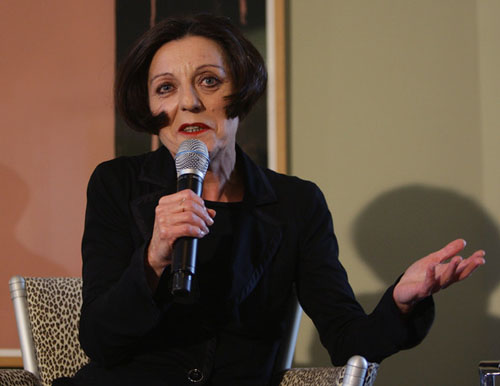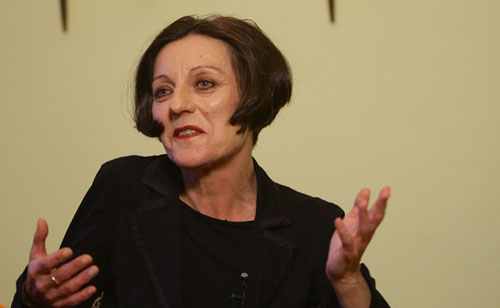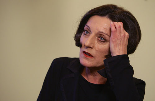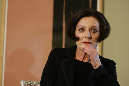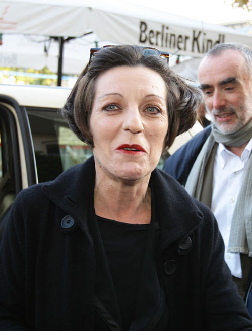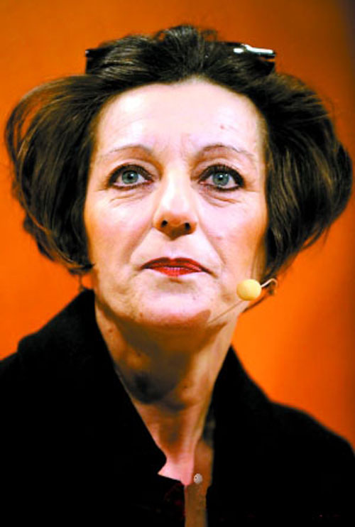 62.赫塔·米勒2009.10.8出席在柏林召开的新闻发布会侧头彩色照。