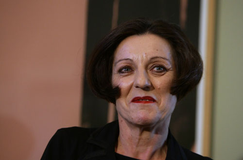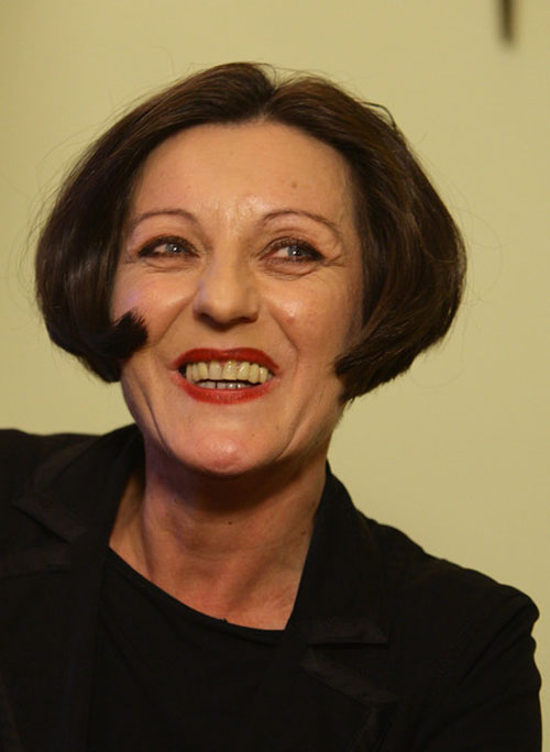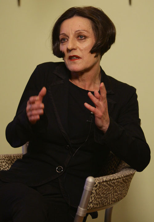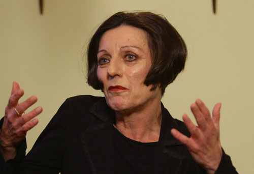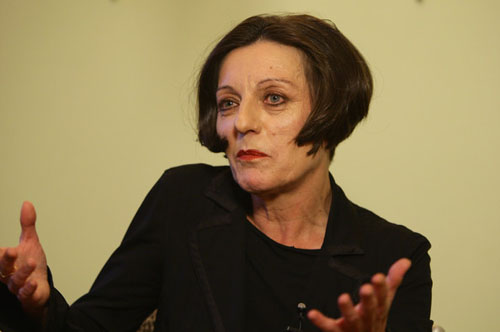 82.赫塔·米勒2009.10.8出席在柏林召开的新闻发布会头部彩照。