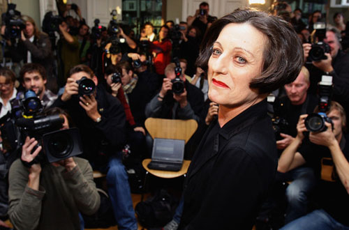 58.赫塔·米勒2009.10.8出席在柏林召开的新闻发布会侧立彩照。