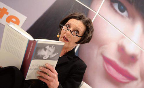 103.赫塔·米勒2009年朗读新著彩照。