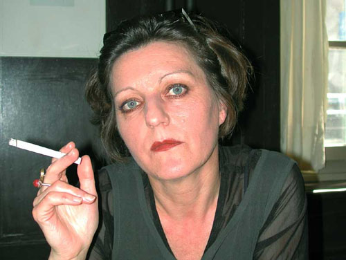 117.赫塔·米勒执烟彩照。