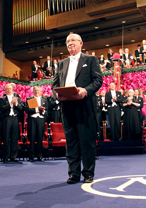 17.戴尔·托马斯·莫特森2010.12.8在斯德哥尔摩大学发表诺贝尔演讲彩照