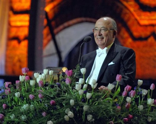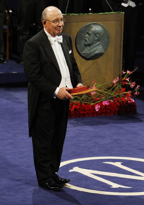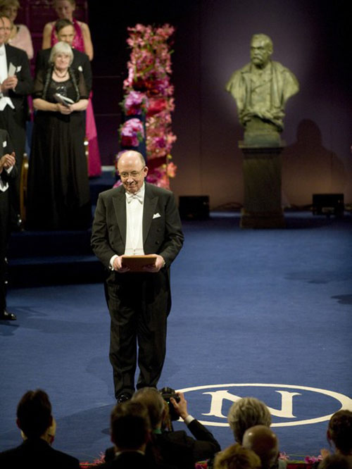 8.戴尔·托马斯·莫特森2010.12.10在斯德哥尔摩音乐大厅接受2010年诺贝尔经济学奖彩照