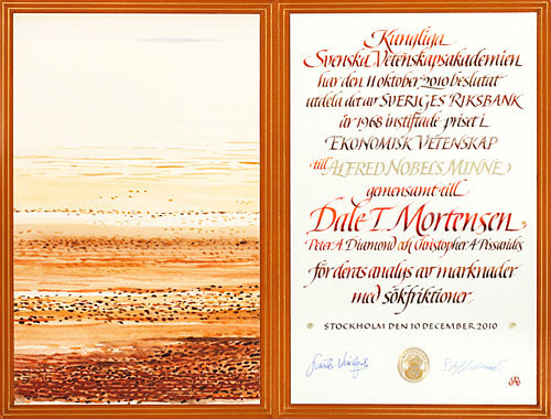 9.戴尔·托马斯·莫特森所获2010年诺贝尔经济学奖证书