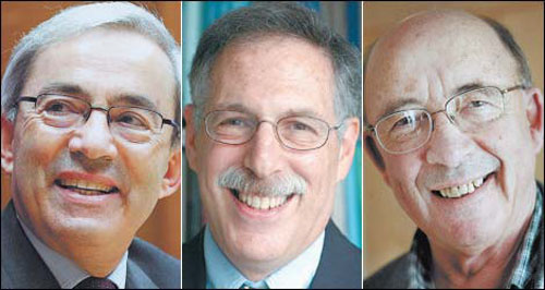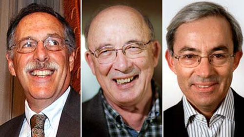 50.戴尔·托马斯·莫特森与彼得·阿瑟·戴蒙德、克里斯托弗·安东尼奥·皮萨里德斯共获2010年诺贝尔经济学奖之彩照