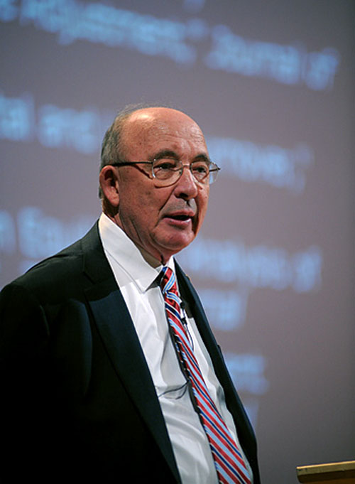 7.戴尔·托马斯·莫特森2010.12.10在斯德哥尔摩音乐大厅接受2010年诺贝尔经济学奖彩色照