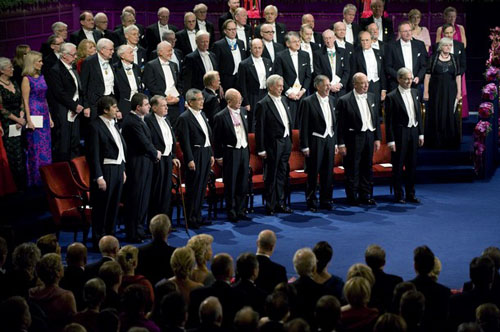 28.戴尔·托马斯·莫特森2010.12.10与众得主在斯德哥尔摩音乐大厅诺贝尔颁奖现场之彩色照